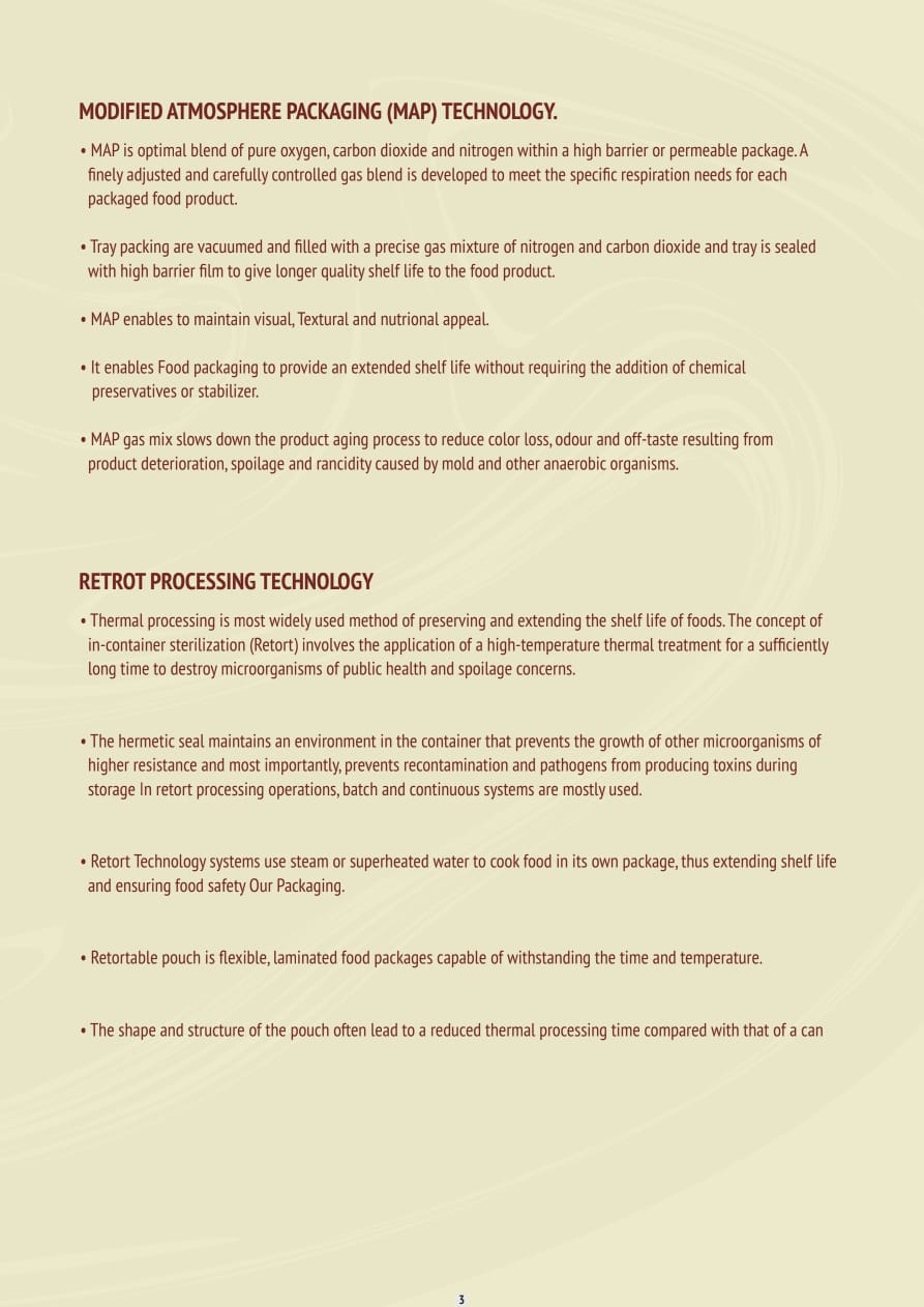 Thermal processing is most widely used method of preserving and extending the shelf life of foods. The concept of in-container sterilization (Retort) involves the application of a high-temperature thermal treatment for a sufficiently long time to destroy microorganisms of public health and spoilage concerns.